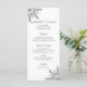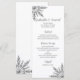 Personalize o Menu de Casamento no inverno Faux Silver Snowflakes bonito com os detalhes da refeição que servirá no almoço de dezembro, Janeiro ou fevereiro de chá de panela, ensaie janto ou recepção de casamentos adicionando a salada ou o primeiro curso, o primeiro curso ou o segundo curso e a sobremesa ou o terceiro curso. Este elegante cardápio de casamento wintery apresenta um intrincado tom de cinza prateada, flocos de neve coloridos, enfeitando os cantos com um fundo branco.