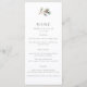 Menus de casamento no inverno elegantes que apresentam uma ramificação de pinheiros com uma pinha de pinho. Personalize com seus nomes, data e menu de casamento.