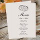 Este cardápio de casamento mostra um belo cavalo ilustrado em estilo rústico, fazer ideal para as comemorações do país e da fazenda. Projetado em tons suaves de marfim com elegante escrita preta, ele adiciona um toque de refinamento ao celeiro, equestre e casamentos ao ar livre. Adequado para eventos de outono, primavera, ou verão, este menu traz um elemento romântico e sincero à sua recepção. O motivo do cavalo acrescenta caráter eterno, perfeito para casais que apreciam beleza rural e detalhes naturais. Coordena-se lindamente com a tua suite de casamento completa.