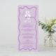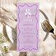 Um legal menu de casamento ousado com nomes personalizados com uma caligrafia escrita à mão e uma letra serif, 2 nomes , dois estilos com o casamento ondulado com a curva de lavanda roxa Retro boho roxa. Todos os textos, nomes e cores de fundo são personalizáveis para você misturar e combinar com seu pacote de casamento.