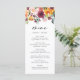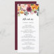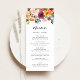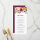 Adicione um sotaque floral elegante à sua colchete de eventos com este cartão de menu floral personalizável. Apresenta a terra floral de cor aquosa de flores laranja, rosa, burgundy e amarelas do outono com sotaque de eucalipto e verde. Personalize este cartão de menu floral de cor d'água adicionando seus próprios detalhes. Este cartão de menu de aquarela é perfeito para o outono ou casamentos outono, chás de panela, chás de fraldas e muito mais.