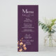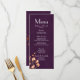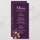 Este cartão de cardápio de casamento apresenta um detalhe floral e botânico simples e elegante em laranja queimada, sobre um fundo elegante de textura roxa. Ideal para um casamento outono sofisticado, moderno, simples e minimalista. Parabéns! Saúde e prosperidade para o novo casal.