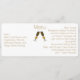 Menu moderno minimalista de recepção de casamento fina feito em uma forma horizontal muito fina. O cardápio tem um fundo branco, na frente, com gráficos de dois copos cheios de champanhe, no meio. Personalize o texto marrom do ouro para sua recepção de casamento.