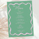 Um cartão de cardápio do estilo manuscrito de borda ondulada, seguindo a última tendência do papel de carta de casamento.