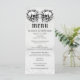 Menu de Casamento Preto e Branco do Crânio Floral Gótico