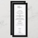 Este design apresenta os nomes da noiva e do noivo como o foco principal do design com uma borda branca, cinza e preta. Nomes personalizados usando tipografia de fontes de script criam uma fusão perfeita de moderno e elegância. Um simples design de cardápio minimalista personalizado com monograma moderno, preto, branco e cinza. Os convites de casamento e outros artigos de papelaria também estão disponíveis.