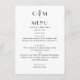 Menu Casamento Preto e Branco Elegante | Floral Minimal