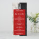 Vermelho moderno e brilhante combinado com fundo de mármore branco e preto elegante e monograma gigante - iniciais de noiva e noivo no topo. Na moda, simples, único, menu de casamento contemporâneo.