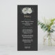 Menu casamento preto romântico de flores brancas verdes
