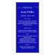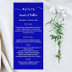 Personalize e adicione seus nomes, a data do casamento e o menu. Fundo azul real, texto branco.
