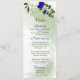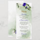 belas flores azuis e brancas e verdes deixam um elegante cardápio botânico. Os detalhes de brilho são simulados