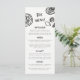 Nosso cardápio de casamento feito à mão é realmente *chefs kiss*. Este design apresenta uma tipografia divertida e eclética que imita a escrita manual natural, com ilustrações feitas sob medida, perfeita para representar a sua recepção e festa de janto.