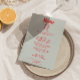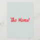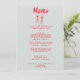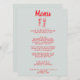 Um retro fedorento, moderno, vermelho e azul-céu, menu de janto de casamento. Que apresenta modelo de chic do fundo azul-céu e tipografia escrita vívida e vermelha-mão. Com coquetéis desenhados à mão com fitas. Perfeito e compatível com toda a suíte.