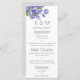 Este menu elegante e romântico apresenta um design floral com lilases de aquarela. Um bando de lindas flores lilás roxas é colocado no topo à direita. Pode substituir os elementos do menu pelas opções de comida da sua escolha. É adequado para um café da manhã, almoço, almoço ou evento de janto, ou para um casamento ou banquete.