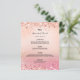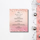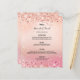 Um cartão de cardápio de casamento elegante e glamouroso. Personalize e adicione seus nomes, data e menu de casamento. Um fundo rosa de ouro e gradiente rosa, decorado com confete.