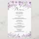 Esta elegante placa de menu da nossa coleção Floral Pressed Lavanda apresenta florais de aquarela roxos com delicadas vinhas verdes, emparelhadas com uma fonte moderna de escrita. Perfeito para qualquer estação. Para fazer alterações avançadas, selecione Personalizar -> Editar usando a ferramenta Design.