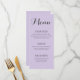 Este simples cardápio de casamento roxo oferece um design refinado e minimalista, perfeito para uma capa de mesa chica e moderna. Com linhas limpas e texto fácil de ler em um fundo roxo rico, este menu apresenta elegantemente suas seleções culinárias para a noite. Ideal para adicionar uma pop de cor sutil à decoração do casamento, é um detalhe na moda e prático que complementa uma variedade de temas de casamento.