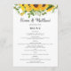 Mostre aos seus convidados a comida deliciosa que eles vão gostar com estes bonitos cartões de menu. Você pode personalizá-los com os nomes da noiva e do noivo e a data do casamento, além de adicionar todos os detalhes importantes do menu. Este design faz parte de uma suíte de casamento com itens coordenadores disponíveis.