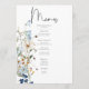 Menu Casamento Rustic Dusty Blue Selvagens & Daisies