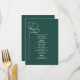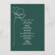 A arte da linha branca inspirou o texto "Menu" no topo com texto personalizado branco e fundo verde esmeralda com flor de arte da linha de solteiro à esquerda.