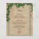 Um estilo de encanto do mundo rústico e antigo para este cartão de menu. Se você está tendo um casamento de celeiro ou vinhedo, esta é a escolha ideal. No antigo papel angustiado, este cardápio tem vinhas de uva no topo e no fundo das bordas. Adicione os itens de menu nas 3 seções. Uma fonte de script burgundy rica é usada para destacar os diferentes títulos. Pelo contrário, o olhar envelhecido também está presente. Aqui você pode adicionar uma mensagem pessoal e seus nomes e data de casamento. Esta modelo é fácil de personalizar com suas escolhas de cardápio de casamento, mas entre em contato com um dos especialistas da nossa equipe de design, que pode ajudá-lo. Este menu de recepção de vinho rústico faz parte da nossa coleção de Casamentos de Vineyard Rustic, porque não navegar por toda a coleção?