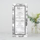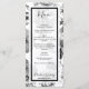 Este design apresenta flores pretas e brancas silvestres. O design floral preto-e-branco combina flores de vinheta com uma camada branca opaca, uma borda preta e um texto simples para criar um visual elegante sofisticado. O uso da tipografia de classe para o texto do texto elogia a design. Este design de cardápio é ideal para qualquer tema de casamento. O design perfeito para todas as estações. Os convites de casamento e outros artigos de papelaria também estão disponíveis.