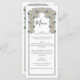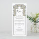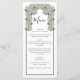 Este design apresenta rosas brancas rústicas. As rosas brancas são complementadas por uma elegante borda negra. Os tons brancos das flores rosa criam um toque rústico de jardim floral. Design de cardápio de casamento elegante com elementos modernos. Os convites de casamento e outros artigos de papelaria também estão disponíveis.
