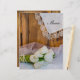 O encantador Menu de Casamento do País das Tulipas Brancas Brancas Russas pode ser personalizado com os detalhes da refeição que você servirá no almoço de chá de panela de março, abril ou maio, janto de recepção de casamentos ou brunch de posto. Este cardápio nupcial personalizado, casual mas clássico, do rancho ocidental apresenta uma fotografia floral acinzentada de um buquê de flores de tulipas brancas, colar de pérolas brancas, véu de brasa e um lenço vintage aparado com lenço de madeira castanha.