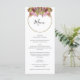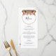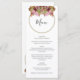 Esta design apresenta um buquê rústico de flores silvestres. Um simples círculo dourado circunda o texto. Os tons rústicos cor-de-rosa floral elogiam o verde das folhas. Os tons de ouro unem tudo para criar uma sensação rústica de jardim florestal rural. Ouro e listras cor-de-rosa cobrir a parte traseira do design. Design de cardápio de casamento elegante com elementos modernos. Os convites de casamento e outros artigos de papelaria também estão disponíveis.