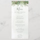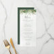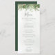 Belo cartão de cardápio de casamento, com ilustrações botânicas pintadas à mão de água, de verde-inverno, pinheiro e ramificações, cones e groselhas. Escolha perfeita para casamentos temáticos de inverno ou Natal.