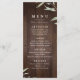 Folhas botânicas de cor aquática modernas sobre fundo de madeira de celeiro escuro, cartões de cardápio simples e elegantes, de excelente para casamento de jardim botânico rústico no outono e no inverno. Veja todas as peças correspondentes na coleção.