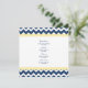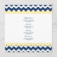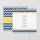 Menu janto de casamento em elegante azul marinho escuro, amarelo-limão brilhante e branco com padrão retrorreflector zigzags divertido, personalizável com seus detalhes e disponível em produtos de casamento correspondentes.