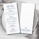 Menu Simples de Janto de Casamento Azul e Branco Inspirado Europeu. Este cartão minimalista de casamento mantém o design limpo e subestimado, deixando o guião manuscrito brilhar. Uma simples linha de preto no topo adiciona um sotaque sutil, enquanto o resto da frente mostra os detalhes do seu menu em uma mistura elegante de scripts e fontes serif, criando um eterno e um aspecto refinado. No verso, os nomes da noiva e do noivo e a data do casamento são cuidadosamente exibidos, oferecendo um toque pessoal e significativo. Totalmente personalizável, o texto e a paleta de cores podem ser personalizados para complementar seu tema de casamento. Perfeito para recepções de casamento, jantas de ensaio ou chás de panela, este cartão de menu traz um toque de elegância para seus eventos especiais enquanto mantém o design simples e sofisticado.