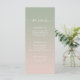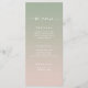 Menus Simples De Recepção de casamento Verde Folha E Cor-De-Rosa Esbranquiçada Jantados. Esta moderna placa de menus chic é simples, clássica e elegante, com um desvanecimento sutil do gradiente ombre e uma bonito letra de caligrafia com script de assinatura com caudas. Mostrada na nova estrada. Disponível em várias opções de cor ou não se sinta à vontade para editar as cores no editor (clique em personalizar mais enquanto personalizar). Para ver mais, procure as coleções de casamento de 2022 da Chic Paperie para ver todas as tendências de designs e cores de casamento para este ano.