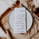 Este simples cardápio formal de casamento branco preto é perfeito para elogiar um casamento rústico. O design apresenta uma fonte elegante para embelezar seu evento.