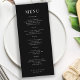 A moody Black Trendy minimalista da tipografia personalizada do cardápio de casamento.