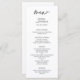 Imprima seus convidados com um toque de elegância refinada usando o Menu de Casamento Minimalista Simples e Preto, Simples e Branco, projetado cuidadosamente para casais que apreciam linhas limpas e estilo de eterno. Apresentando um texto preto clássico sobre um fundo branco nítido, este menu oferece uma apresentação elegante e sofisticada da sua refeição do dia do casamento. Seu layout minimalista garante a legibilidade enquanto complementa uma ampla variedade de temas de casamento, desde comemorações urbanas quicas a jantas formais clássicas. Impresso no estoque de cartão de alta qualidade e totalmente personalizável, este menu adiciona um elemento polido e coeso à sua configuração de mesa e melhora a experiência geral de jantar com charme subestimado.