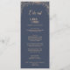 Menu de Casamento Suave Azul Escuro, um menu desenhado de forma elegante que adiciona um toque de elegância à sua recepção de casamento. Feito com fundo azul rico e profundo e delicada tipografia, esse cardápio é perfeito para casais que querem complementar seu tema de casamento com sofisticação. As suaves matizes azuis evocam um ambiente calmo e sereno, fazer-o ideal para casamentos formais e íntimos. Personalize o menu para mostrar as opções de refeições personalizadas e impressione os seus convidados com este design de alta qualidade e na moda. Perfeito para casamentos que priorizam estética e funcionalidade.