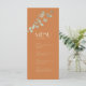 Este menu de casamento Terracotta Eucalyptus Deco fornece um boho minimalista, e o tema do país rústico, ocidental ou deserto. A simples folhagem verde de eucalipto verde-simples complementa o fundo do outono de terracotta, enquanto o tipo de deco de arte combinado com o verde botânico e o pano de fundo laranja queimado cria uma versatilidade para combinar com outros produtos coloridos desta coleção. Essas combinações de cores certamente irão animar os convidados que comparecerão à comemoração do seu casamento.