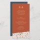 Um detalhe de pedra sobre o terrazzo e uma tipografia inspirada no século do médio dão a este cardápio de casamento um 'nu', 'hip vibe' em uma paleta colorida de ferrugem, blush e slate blue inspirada no deserto, todos saltados com um monograma moderno.