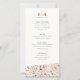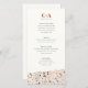 Um detalhe de pedra sobre o terrazzo e uma tipografia inspirada no século do médio dão a este cardápio de casamento um 'nu', 'hip vibe' em uma paleta colorida de ferrugem, blush e slate blue inspirada no deserto, todos saltados com um monograma moderno.