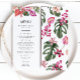 Celebre seu amor e fuja ao paraíso com esses Menus de Casamento Tropicais. Perfeito para casamentos de praia e de destino costeiro, esses menus de casamento são cheios de toques elegantes e modernos, florais românticos e cores vibrantes. A trabalho de arte de aquarela impressionante inclui palmeiras verdes e folhas de monstera, orquídeas magenta e fuchsia brilhantes e flores de hibisco rosadas e cor-de-rosa. Encontre itens correspondentes na Coleção de Casamentos Florais Coloridos.