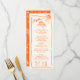 Cartões de cardápio de destino de casamento tropicais, de cor branca e puxada pela mão brilhante. Apresenta um quadro solar tropical com bolo de casamento, vinho e um cenário de mesa desenhado por McBooboos. Perfeito para o casamento da ilha tropical moderna! A cor laranja pode ser alterada para qualquer cor que você escolher! Para fazer mais mudanças, vá para Personalizar este modelo. Na parte inferior você verá "Quer personalizar este design ainda mais? Clique em EDIT usando a ferramenta Design. A partir daí você pode mudar algumas fontes e algumas cores, mover coisas ou excluir o que você precisa.