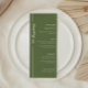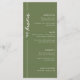 Um cartão de casamento verde-oliva moderno e elegante. Personalize com seus itens de cardápio de casamento e seus nomes e data de casamento na parte inferior do cartão.