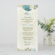 Menu casamento verde com flores brancas azuis