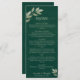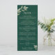 Este cardápio de casamento é elegante, rústico e bonito. Apresenta uma esmeralda design com folhas de aquarela pintadas manualmente em tons de sábio. O título está escrito em uma caligrafia antiga e há espaço para os nomes do casal e da data do casamento abaixo. Simples, moderno e clássico, este menu certamente adiciona estilo à sua recepção de casamento.
