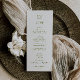 VERONA Moss Green, Janto, doodle, menu de casamento. Características, Tipografia Verde Moss, fundo de cor bege claro e detalhes da vinha de flor silvestre.