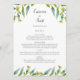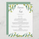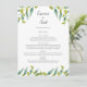 Um cardápio de casamento de jardins de chic apresentando eucalipto natural fresco deixa folhagem verde, enquadra seus detalhes de casamento em um roteiro elegante e tipografia clássica. Projetado por Thisnotme©