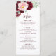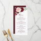 Este elegante cardápio moderno de casamento apresenta um buquê de rosas borrifadas e cor-de-rosa com eucalipto verde e texto na moda. O dorso está combinando com o burgundy escuro. Encontre produtos correspondentes na coleção ou envie-me mensagem através do Zazzle Chat para mais produtos ou diferentes formas de cores.