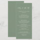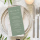 Um simples cartão de menu de janto moderno para a sua recepção de casamento, que apresenta um cartão verde clássico de sábio com tipografia creme. Personalize com seus nomes e data de casamento. Seria também apropriado para uma festa de aniversário, aniversário ou janto elegante.